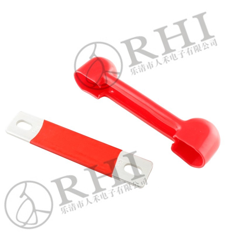 電池用銅排連接以及連體保護(hù)套,T2紫銅材質(zhì),8絲鍍錫,軟塑料連接保護(hù)套,UL94V-0阻燃材質(zhì)。